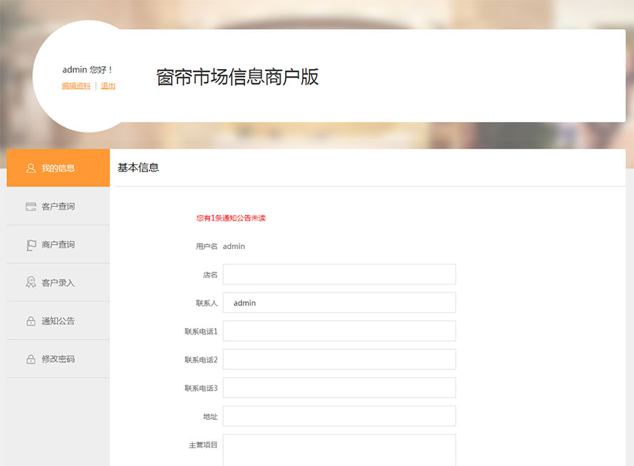 點擊進入螺螄灣窗簾市場信息管理系統(暫無演示,請聯系云南龍頭科技有限公司)